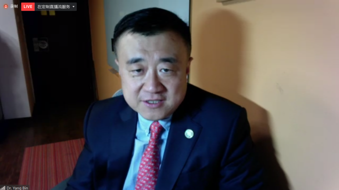 In his speech, Yang Bin expressed congratulations for the fruitful and practical cooperation developed between Tsinghua University, the Pontifical Catholic University of Chile, and the University of Chile. He said that the cooperation between the universities of both countries demonstrated their common mission of "facing the challenges and opportunities of the future".