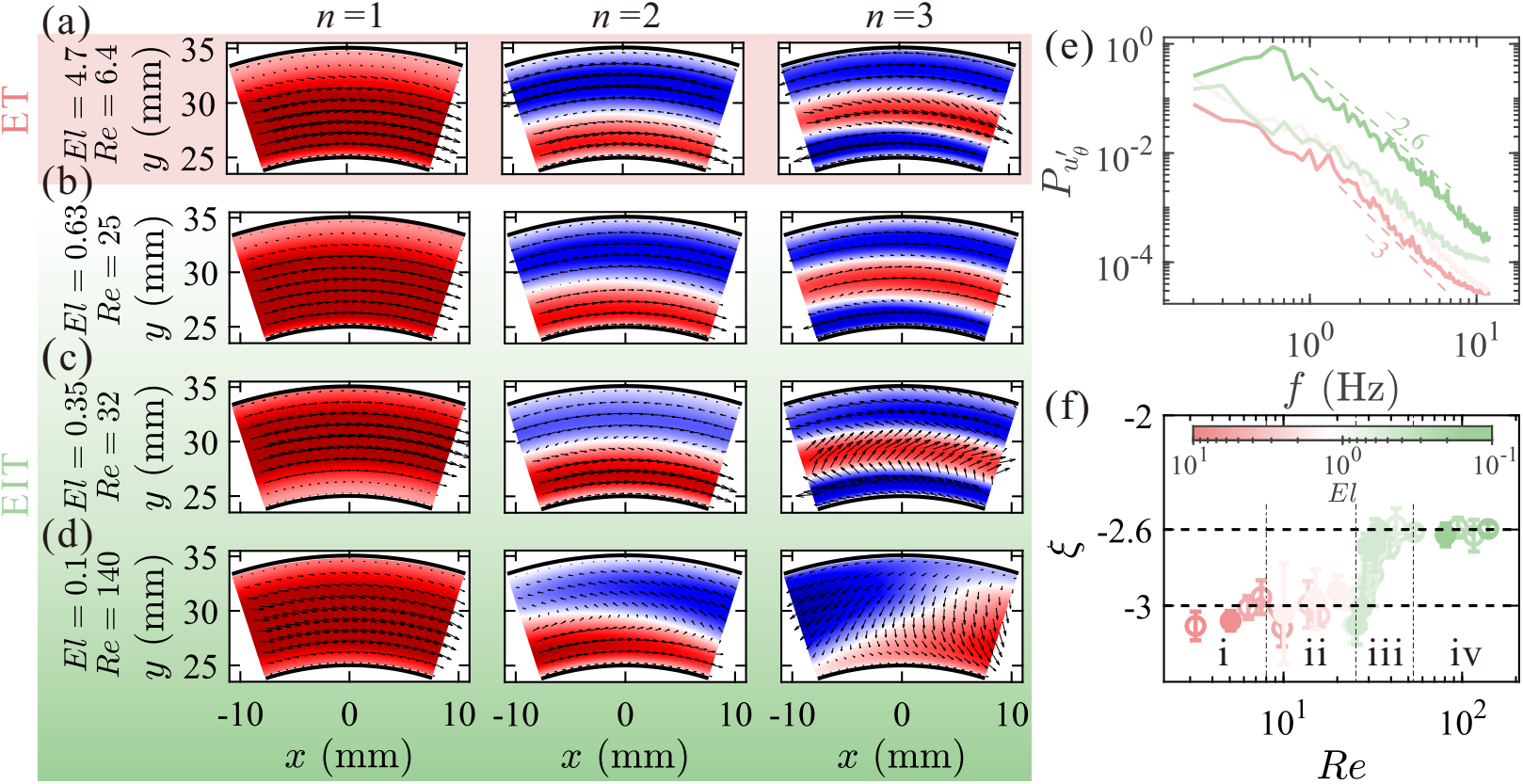 Fig. 2: As the elastic effects of the viscoelastic fluid decrease, elastic turbulence transitions smoothly and continuously to elasto-inertial turbulence.