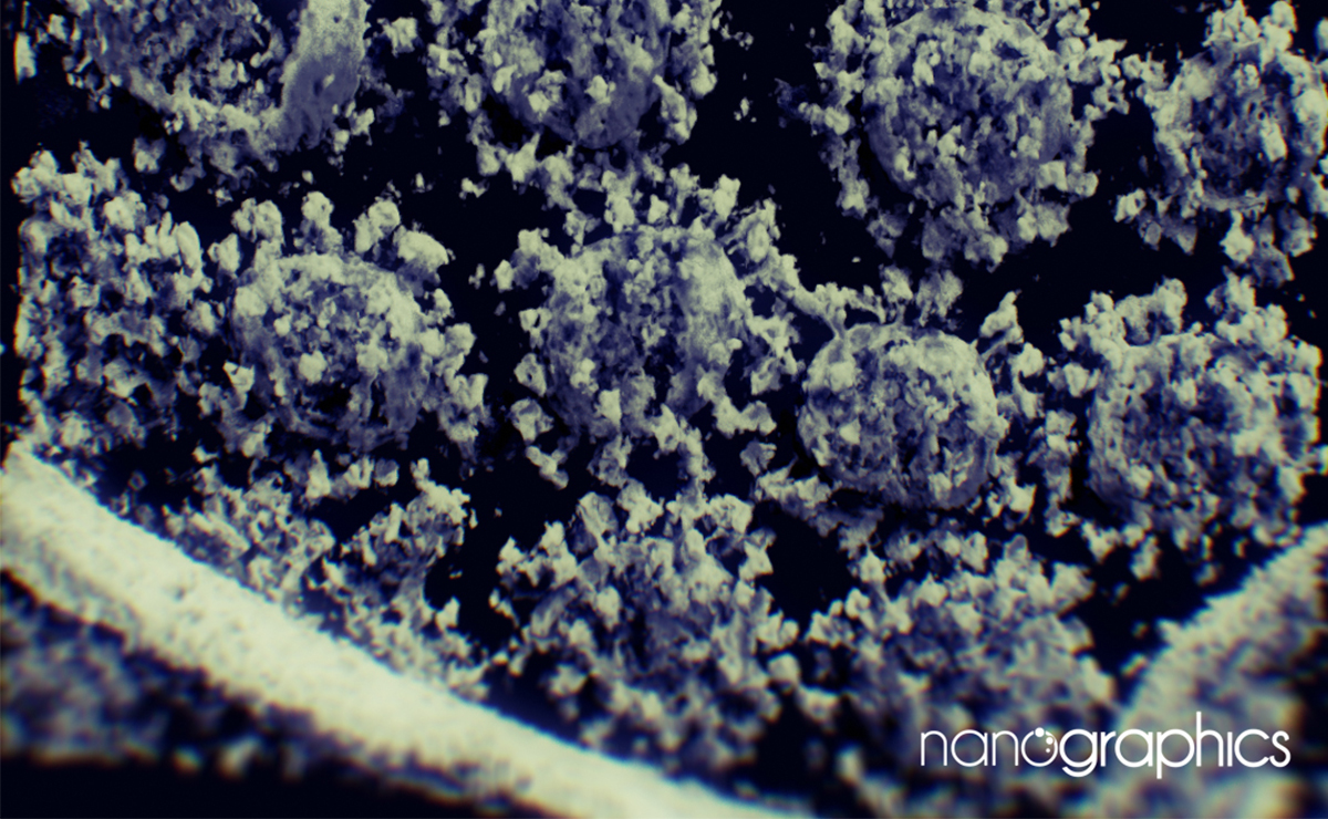 An image of SARS-CoV-2 created using cryo-electron tomography by Tsinghua, and cleaned up and colored by Nanographics GmbH and the King Abdullah University of Science and Technology in Saudi Arabia. (Credit: Nanographics GmbH/https://https://nanographics.at/projects/coronavirus-3d/ Creative Commons Attribution 4.0 International License: https://creativecommons.org/licenses/by/4.0/)