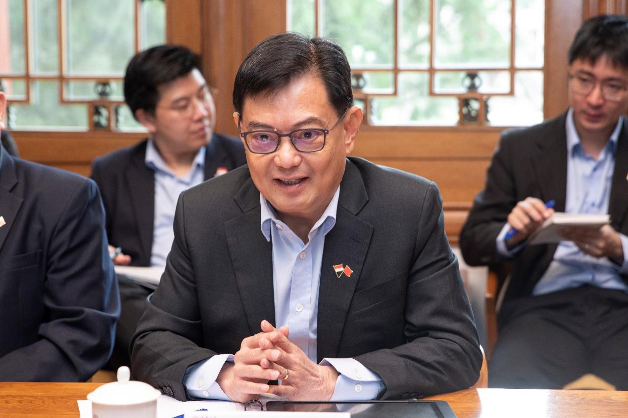 Heng Swee Keat, Singapore's deputy prime minister and coordinating minister for Economic Policies, visited Tsinghua University on April 8. Qiu Yong, secretary of the CPC Tsinghua University Committee, met with Heng and his delegation. They exchanged views on deepening cooperation between Tsinghua and Singapore.