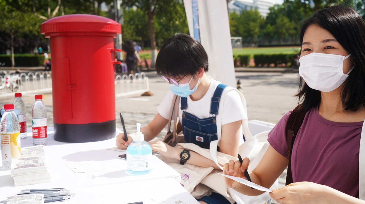本次迎新设置主展板互动区。在主展板区域,新生同学可以拍下创意趣味的纪念合影;在抽奖互动区,新生同学可以从“学风大礼包”“环保加油站”“生活充电宝”三类礼包中抽取自己的开学礼品;在高科技体验区,迎新定制水为新生带来耳目一新的迎新体验;另有“慢邮”站点,供同学们对未来的自己写下期许。