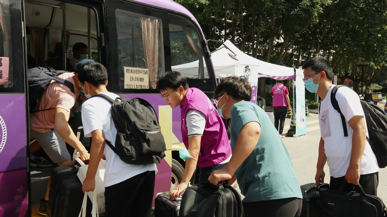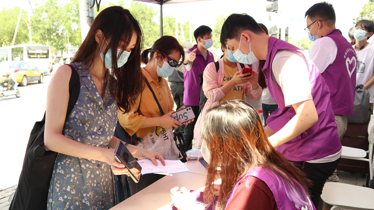 紫荆22号楼学生公寓前,国际学生迎新工作有条不紊地开展。
