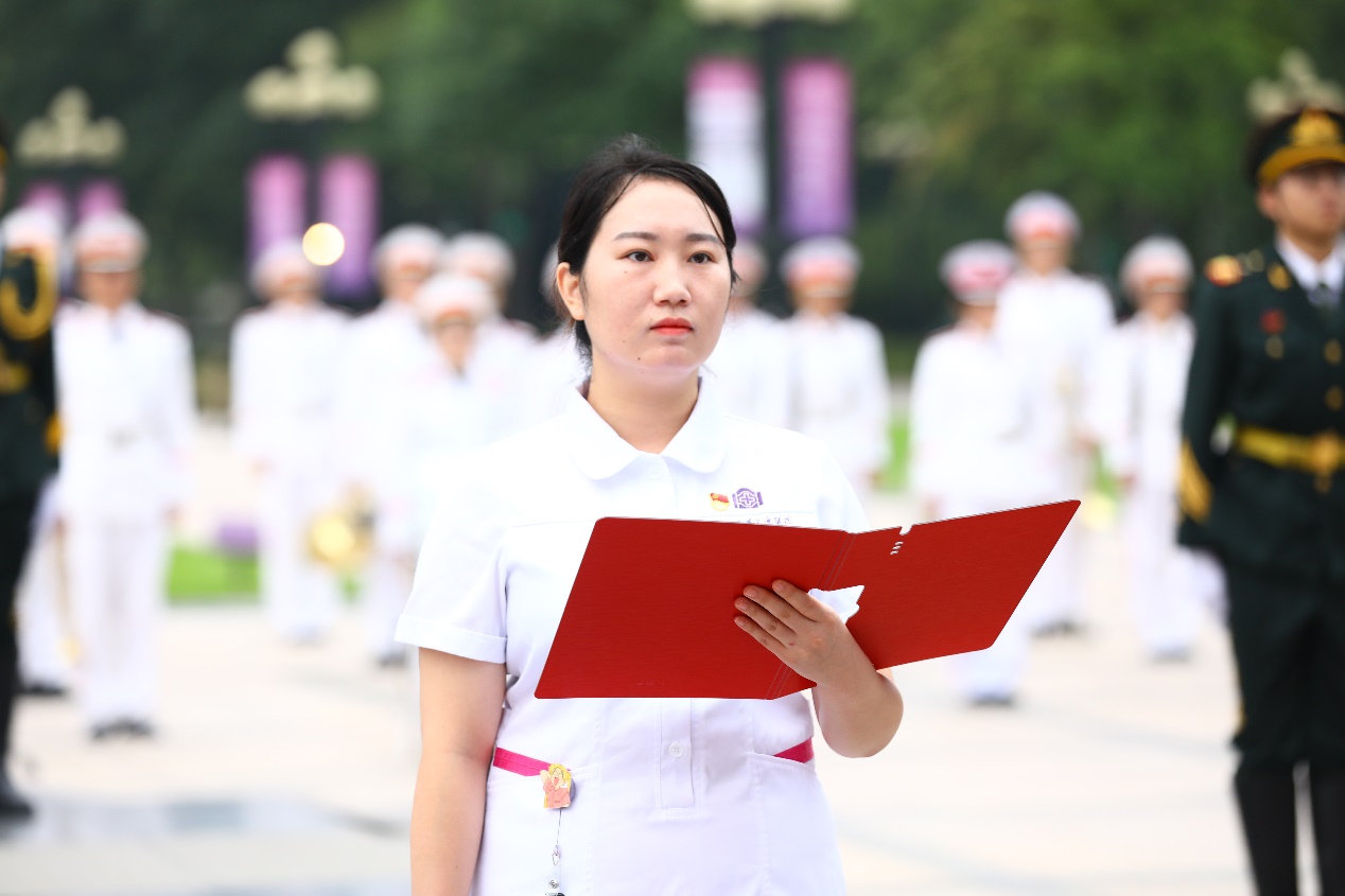 谢娟娟说:“当五星红旗冉冉升起,雄壮的国歌在耳畔回荡,心中的使命感与责任感油然而生,作为一名护士我很渺小,但当所有医护人员与大众齐心协力,必将坚不可摧!它可以战胜病魔!战胜疫情!战胜一切!”